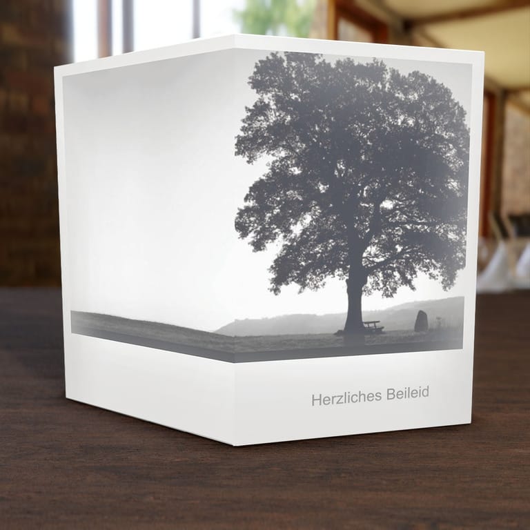 Mit dieser stilvollen Beileidsklappkarte „Baum“ drücken Sie stilvoll ihr Mitgefühl aus.
