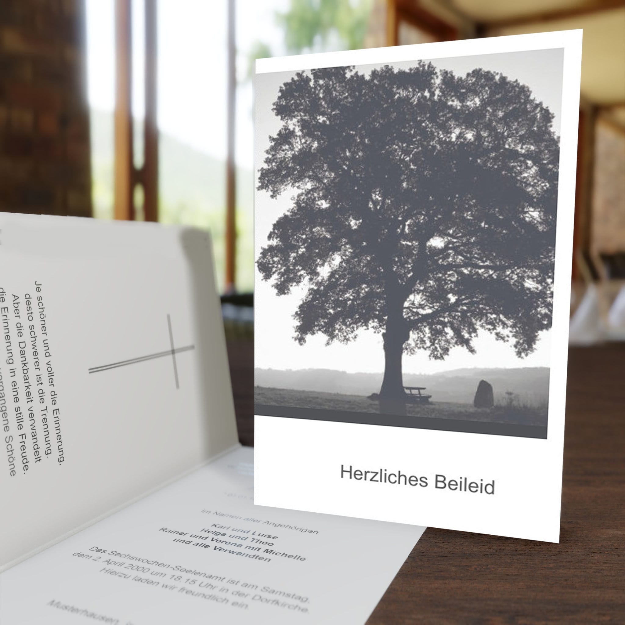 Beileidkarte mit dem Motiv „Baum“ Hochformat im klassischen Hochformat.