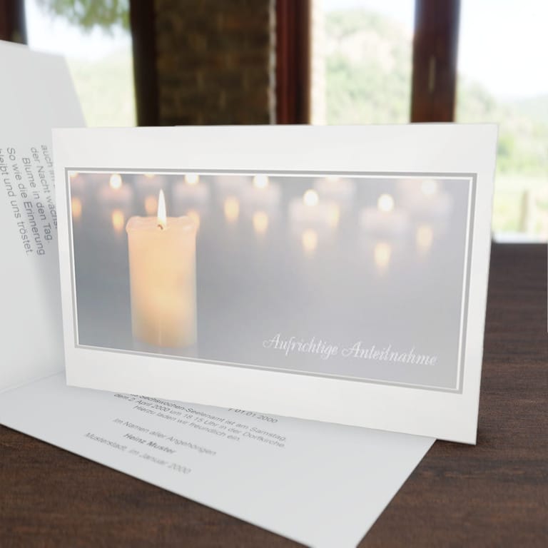 Beileidkarte mit dem Motiv „Kerzen“ Querformat im klassischen Hochformat.