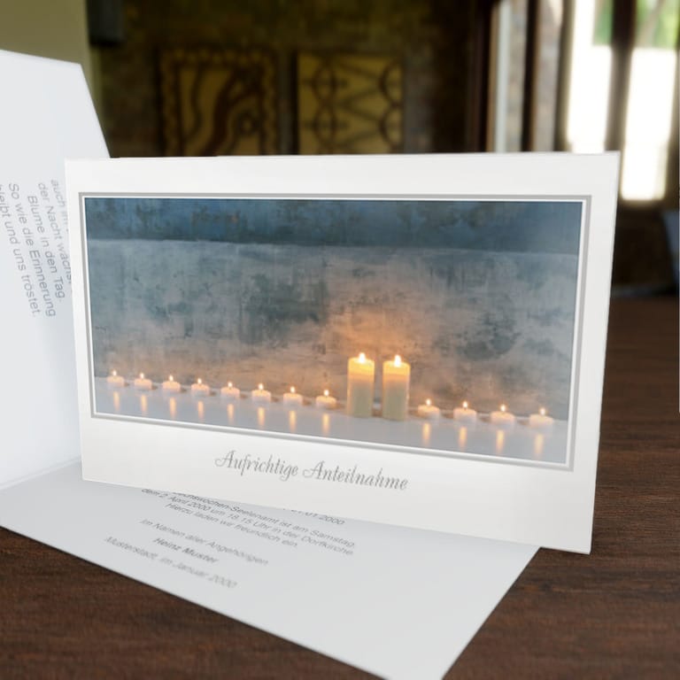 Beileidkarte mit dem Motiv „Kerzen“ Querklapp im klassischen Hochformat.