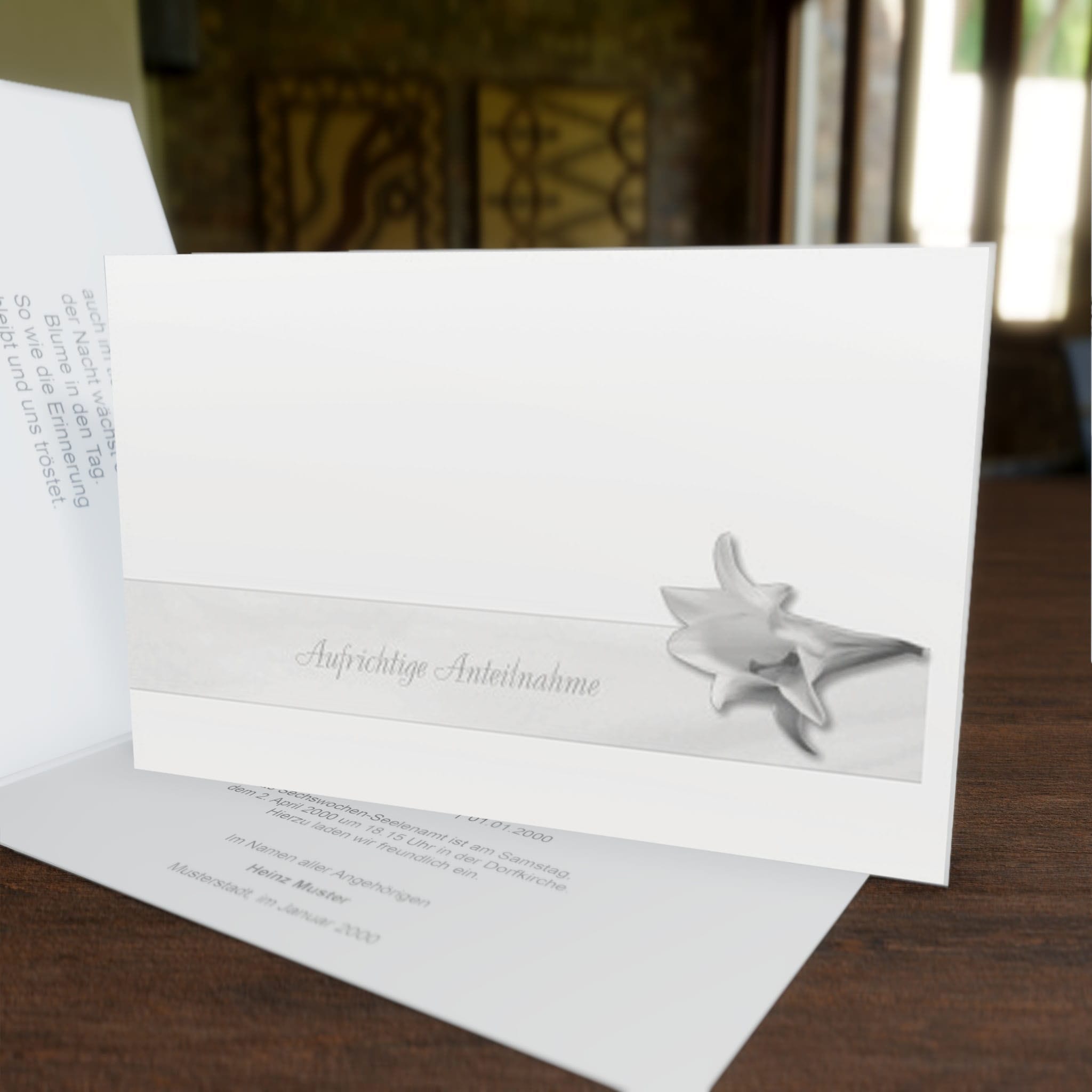 Mit dieser stilvollen Beileidsklappkarte „Lilie“ drücken Sie stilvoll ihr Mitgefühl aus