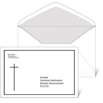 Trauerhüllen klassisch, mit Adresseindruck, mit schwarzem Trauerrand (Rand auf der Vorderseite) und schwarzem Seidenfutter – zum Selbstbeschriften