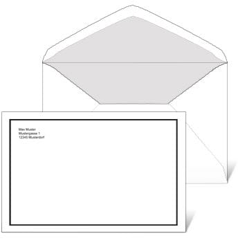 Trauer-Umschlag mit schwarzem Trauerrand (Rand auf der Vorderseite) und schwarzem Seidenfutter – zum Selbstbeschriften.