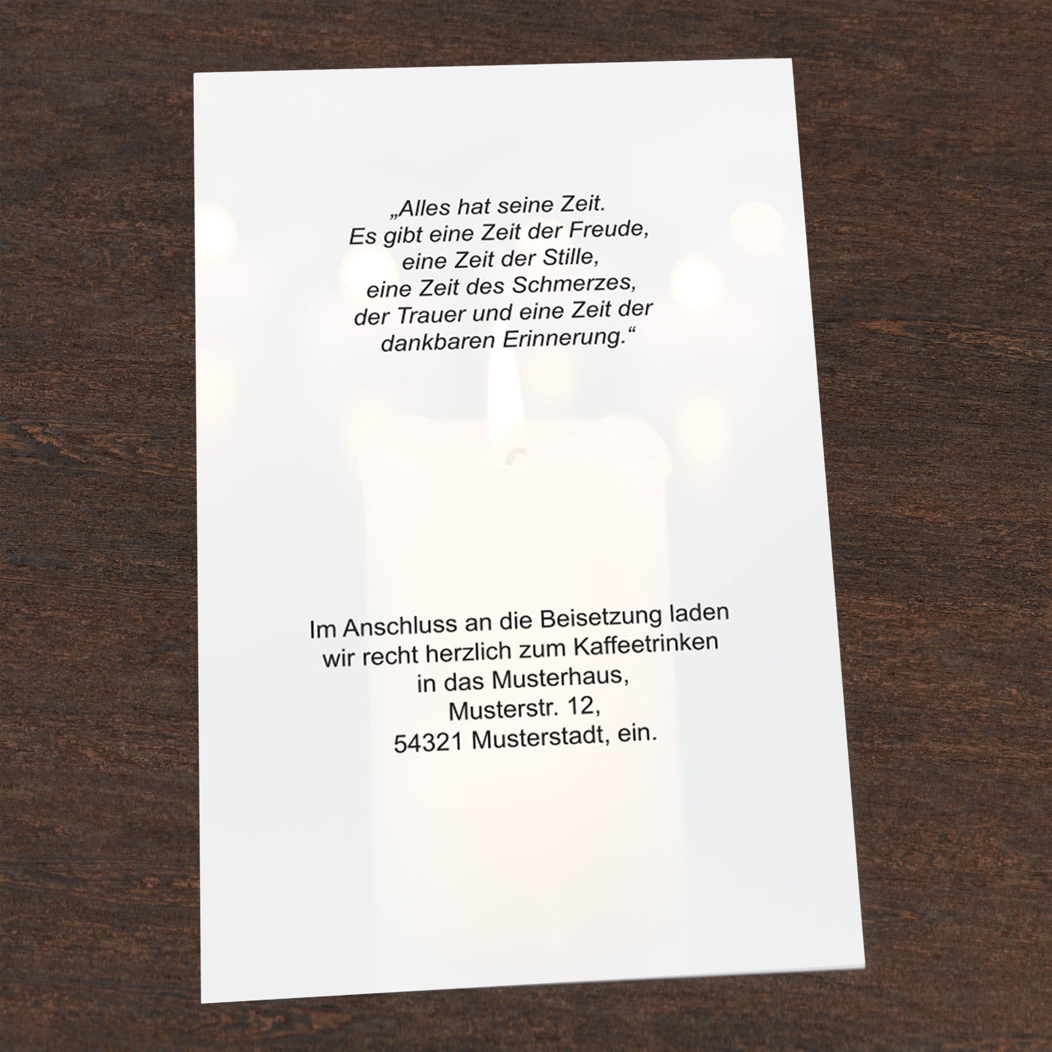 Einlegeblatt mit dem Motiv „Kerze“ Hochformat zum Einlegen in Trauerkarten