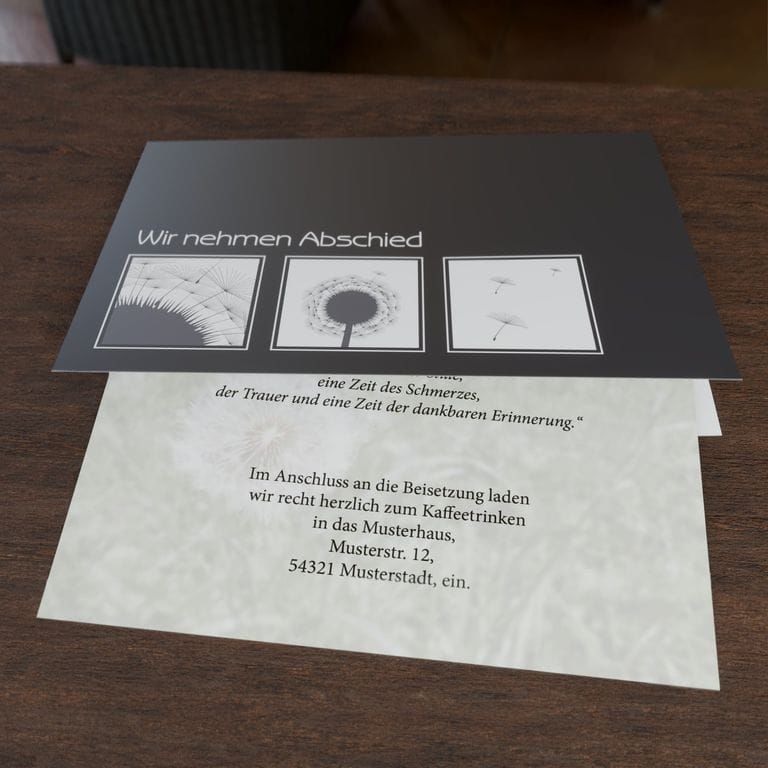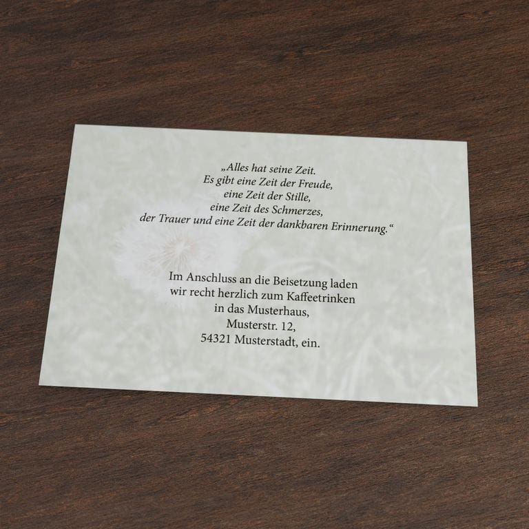 Einlegeblatt mit dem Motiv Pusteblume zum Einlegen in Trauerkarten