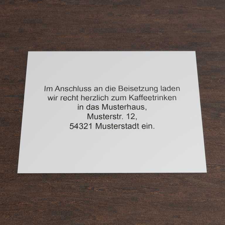 Gestalten Sie in wenigen Schritten Ihre individuellen Kaffeekarten als Einladung zum gemeinsamen Kaffeetrinken und legen Sie diese Ihren Trauerkarten bei.