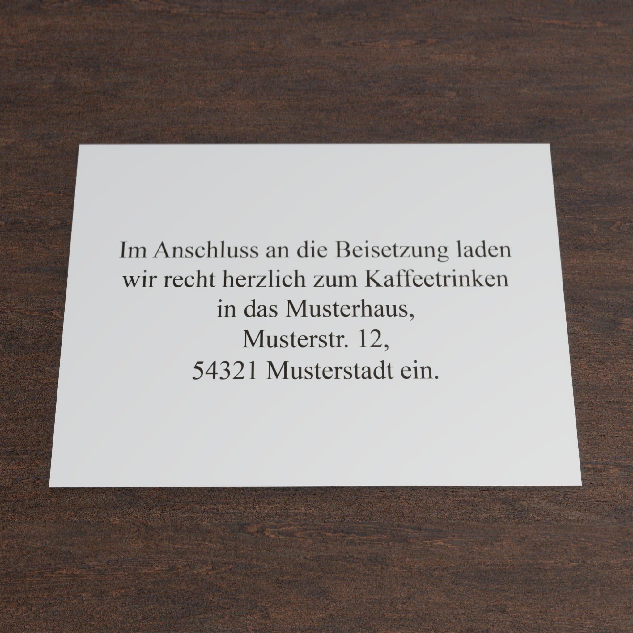 Gestalten Sie in wenigen Schritten Ihre individuellen Kaffeekarten als Einladung zum gemeinsamen Kaffeetrinken und legen Sie diese Ihren Trauerkarten bei.