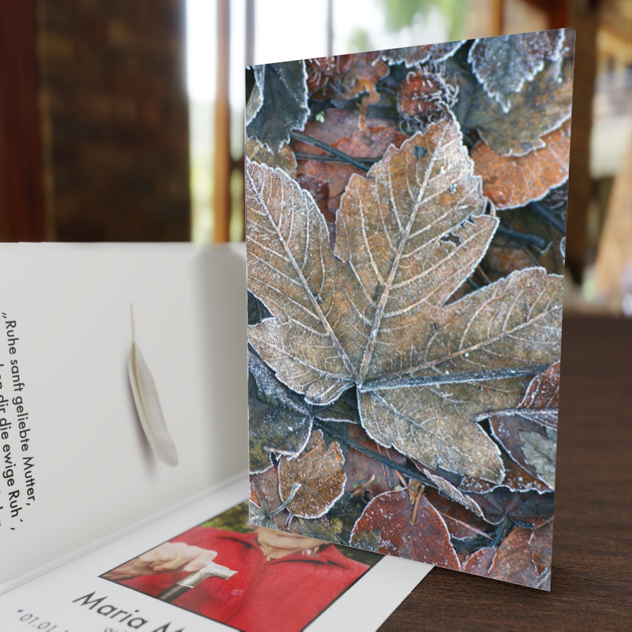 Überreichen Sie ihren Gästen dieses Trauerbild „Blätter“