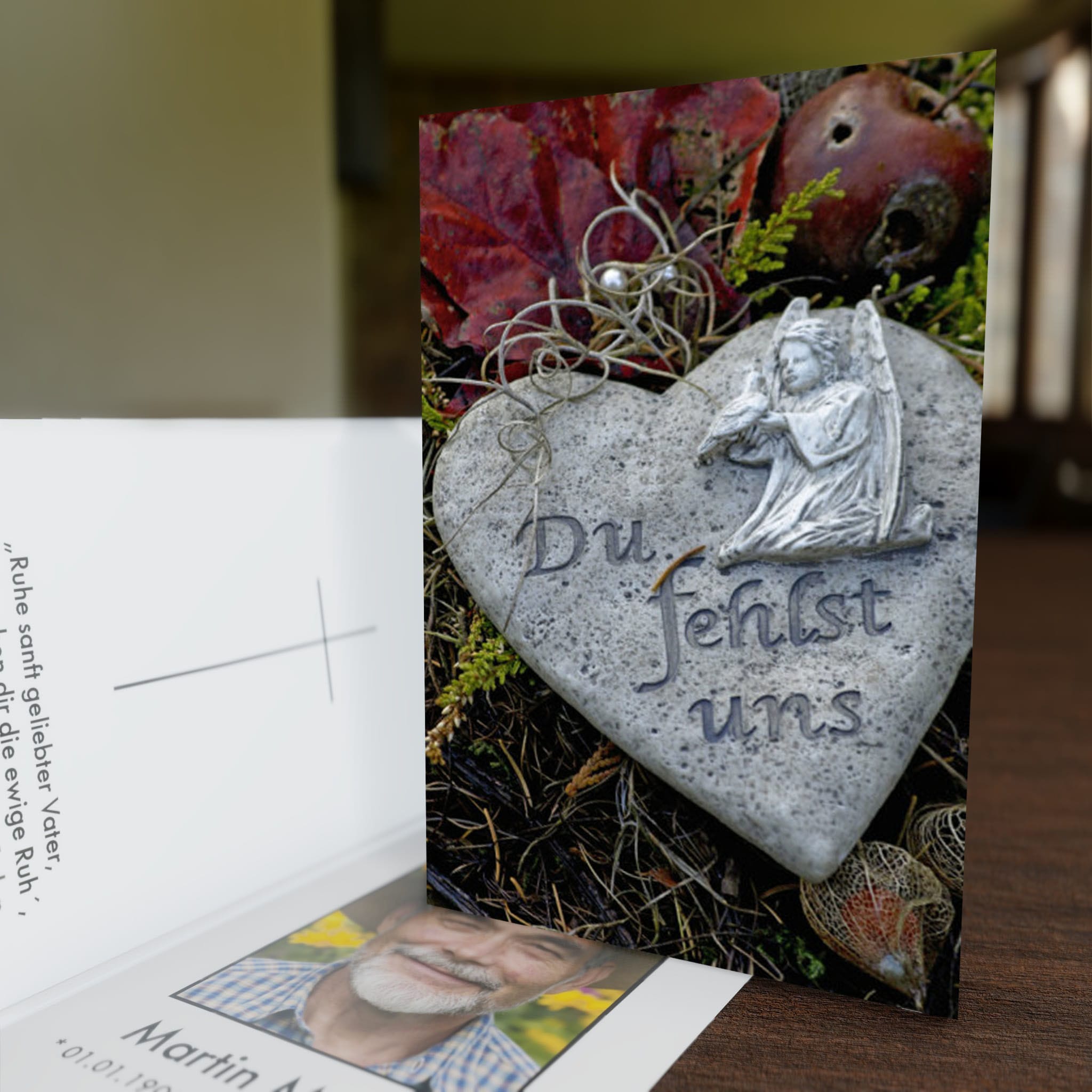 Überreichen Sie ihren Gästen dieses Trauerbild „Du fehlst uns“