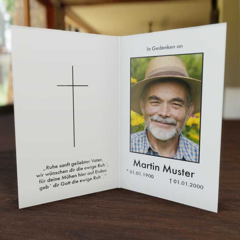 Unsere Sterbebilder werden auf hochwertigem, mattem Bilderdruckpapier (170g/m²) gefertigt und bieten eine angenehme Haptik.