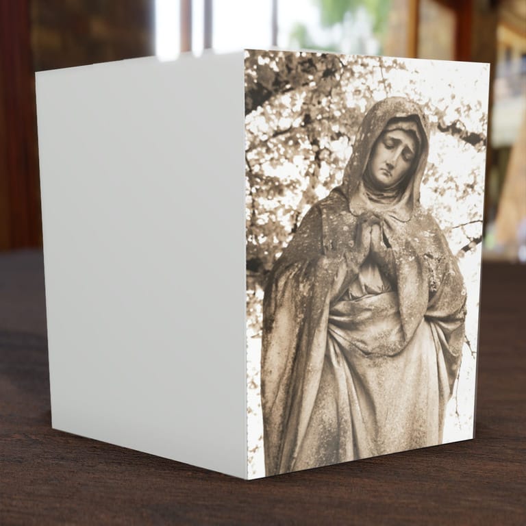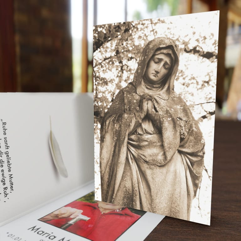 Überreichen Sie ihren Gästen dieses stilvolle Trauerbild „Maria betend“