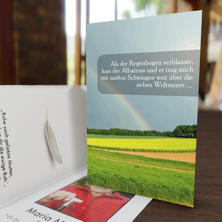 Elegantes Sterbebild mit dem Motiv Regenbogen.