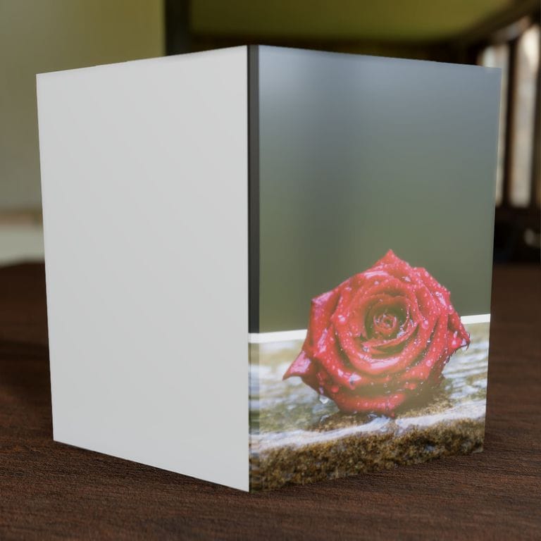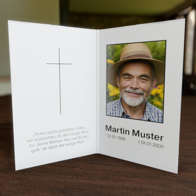 Unsere Sterbebilder werden auf hochwertigem, mattem Bilderdruckpapier (170g/m²) gefertigt und bieten eine angenehme Haptik.