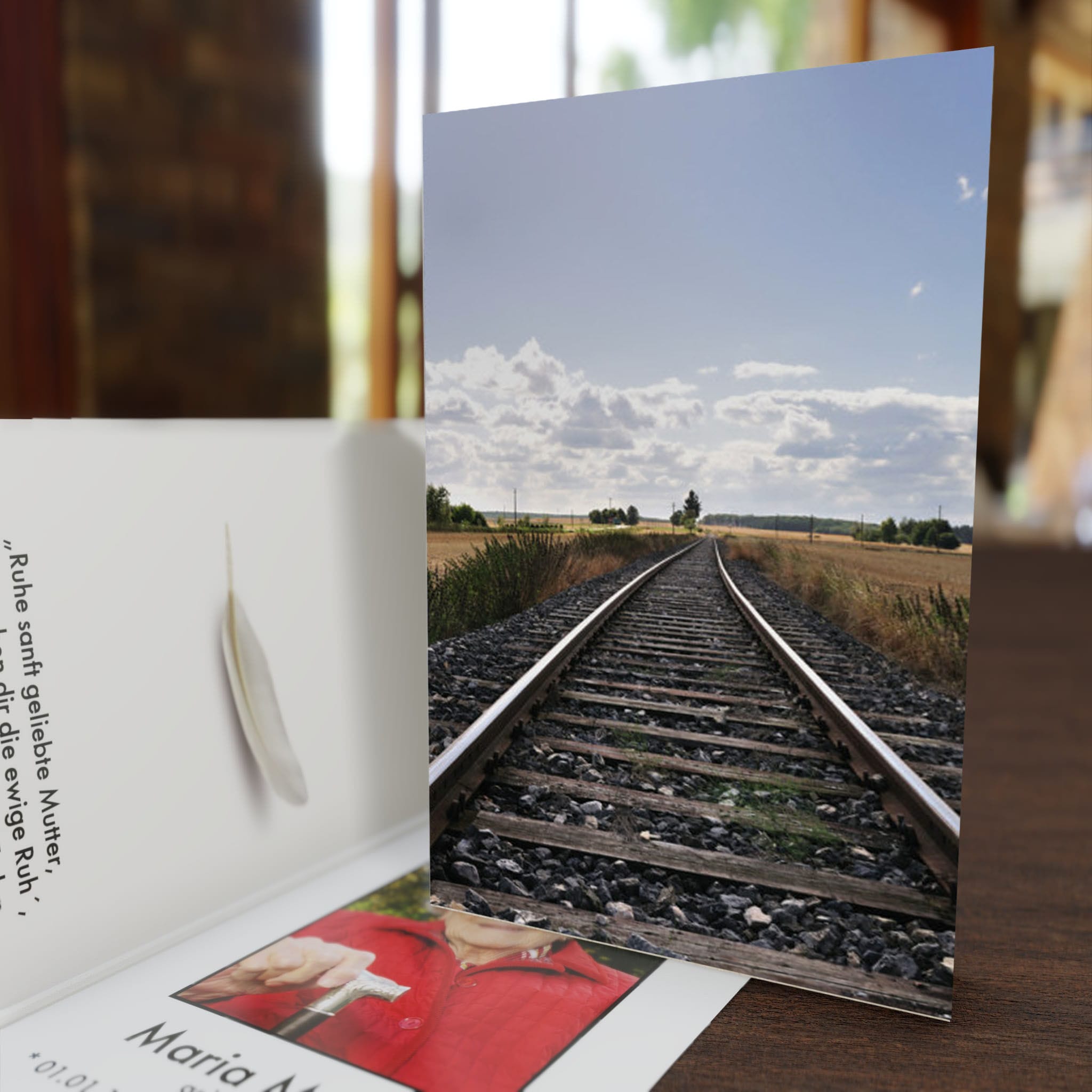 Überreichen Sie ihren Gästen dieses Trauerbild „Schienen“
