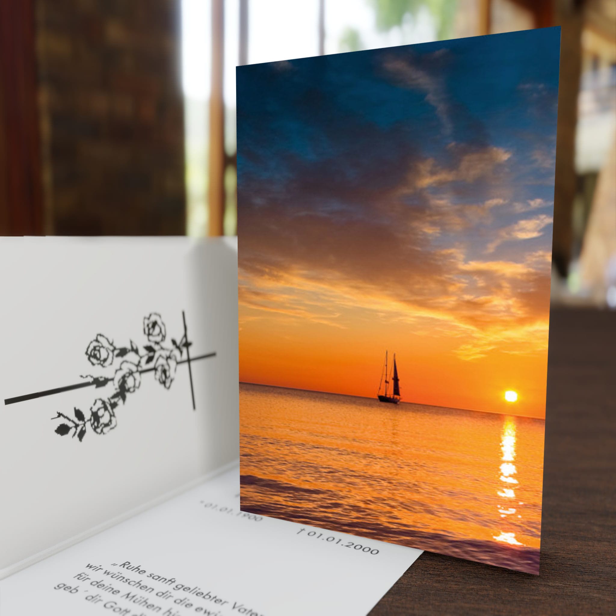 Überreichen Sie ihren Gästen dieses Trauerbild „Segelboot“