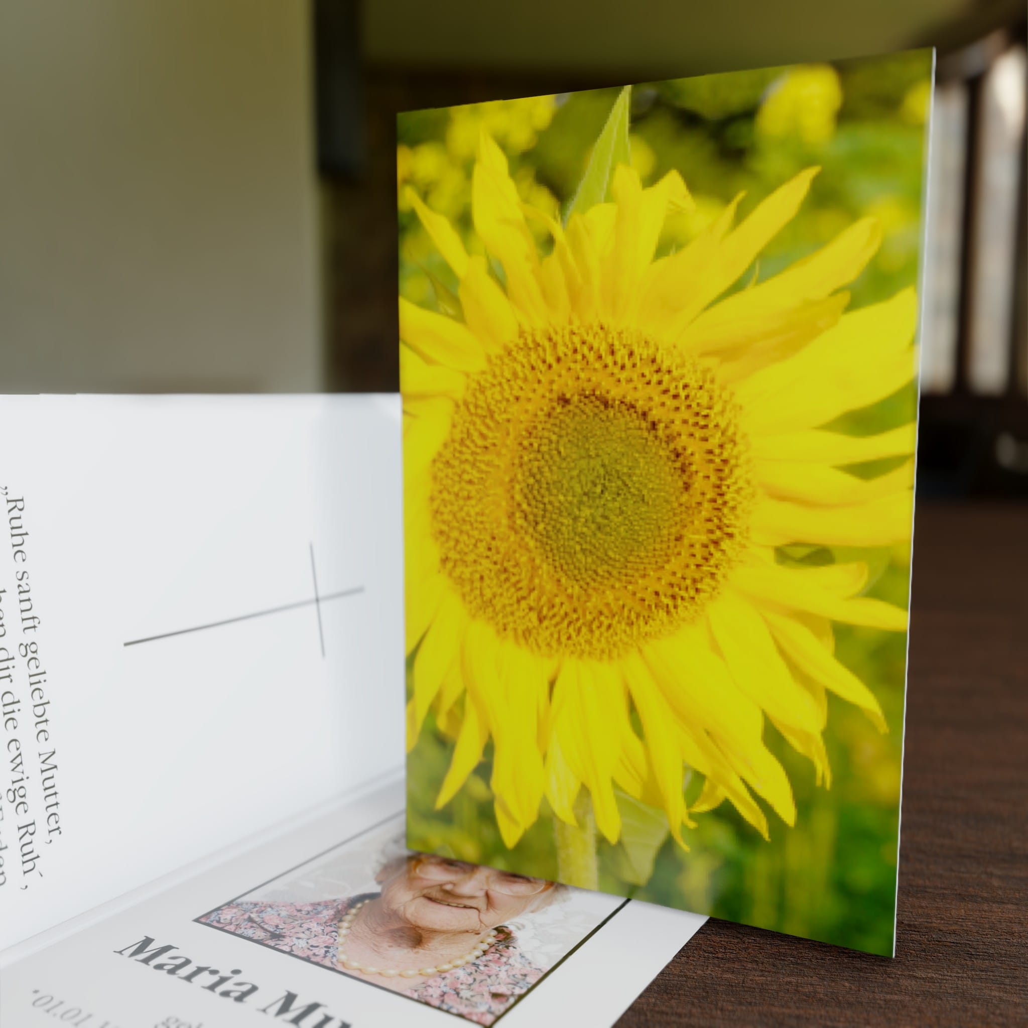 Überreichen Sie ihren Gästen dieses stilvolle Trauerbild „Sonnenblume“