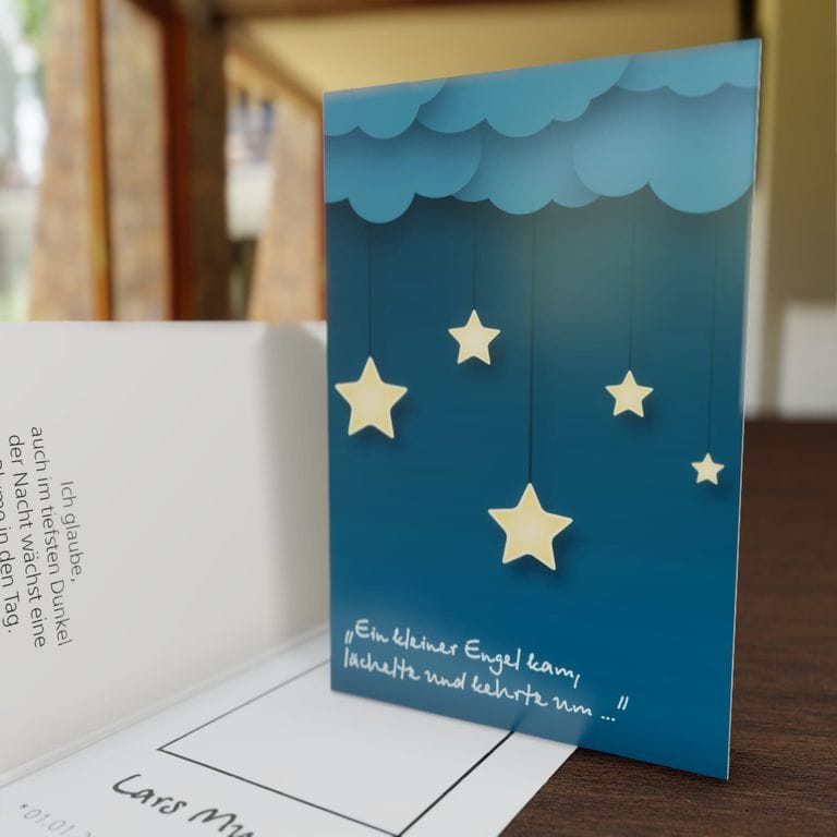 Überreichen Sie ihren Gästen dieses stilvolle Trauerbild „Sternenkind“