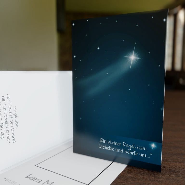 Elegantes Sterbebild mit dem Motiv Sternschnuppe.