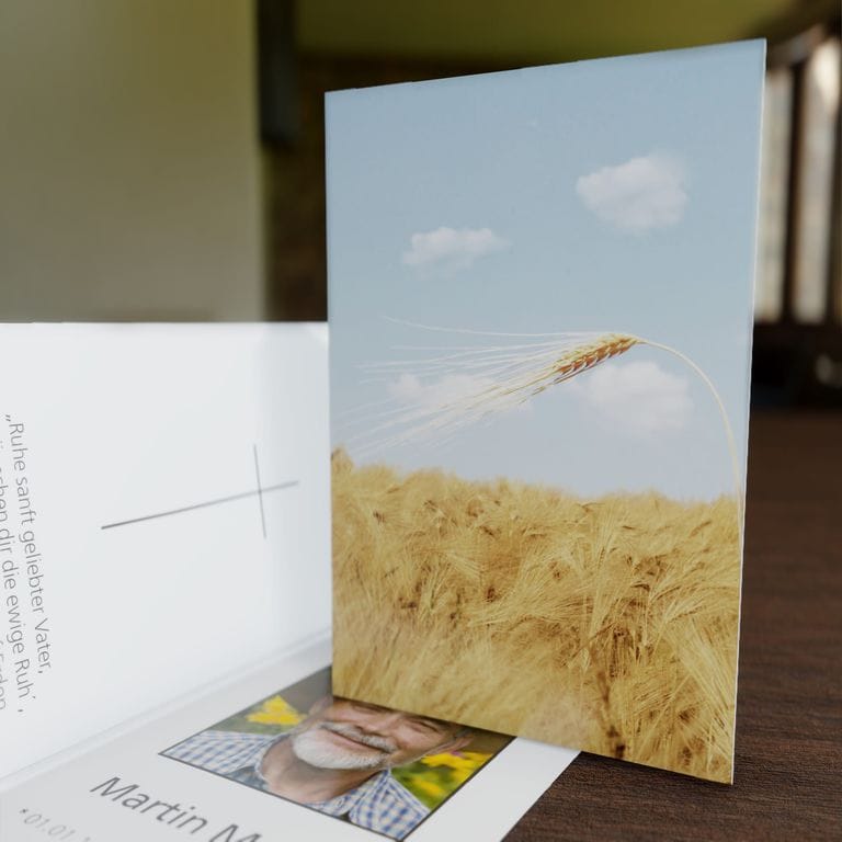 Elegantes Sterbebild mit dem Motiv Weizenfeld.