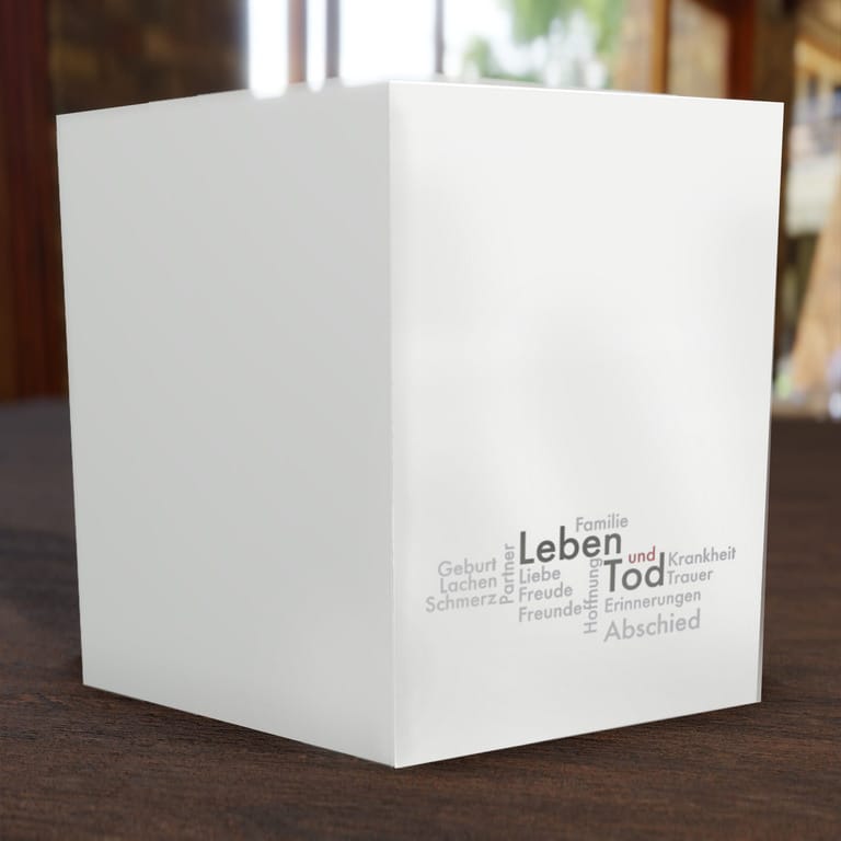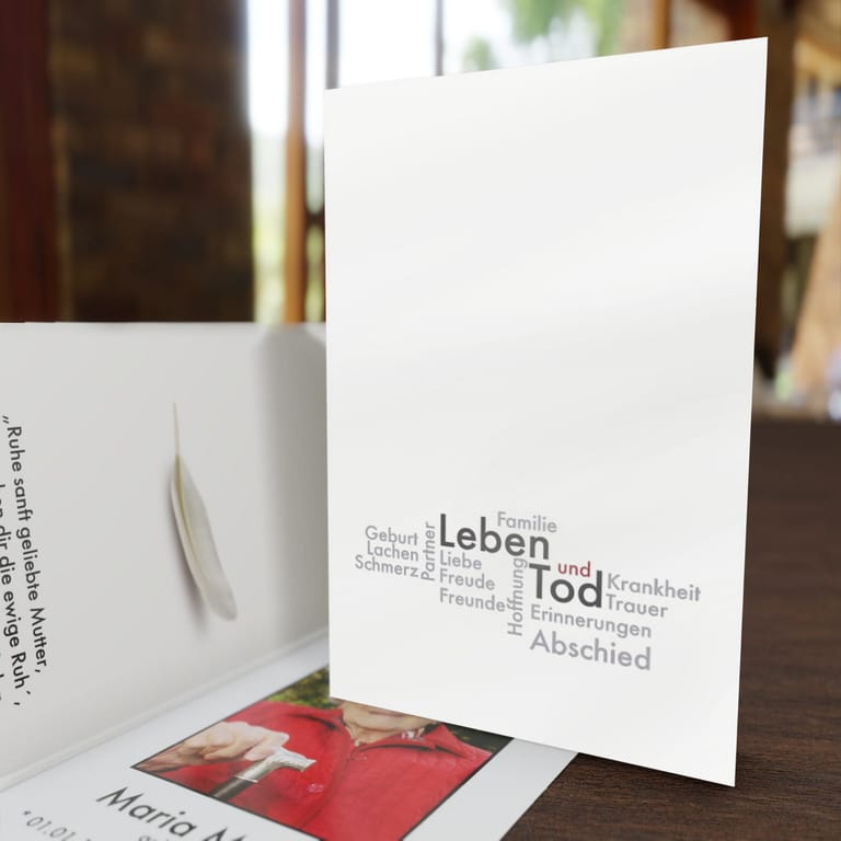 Elegantes Sterbebild mit dem Motiv Wortwolke.