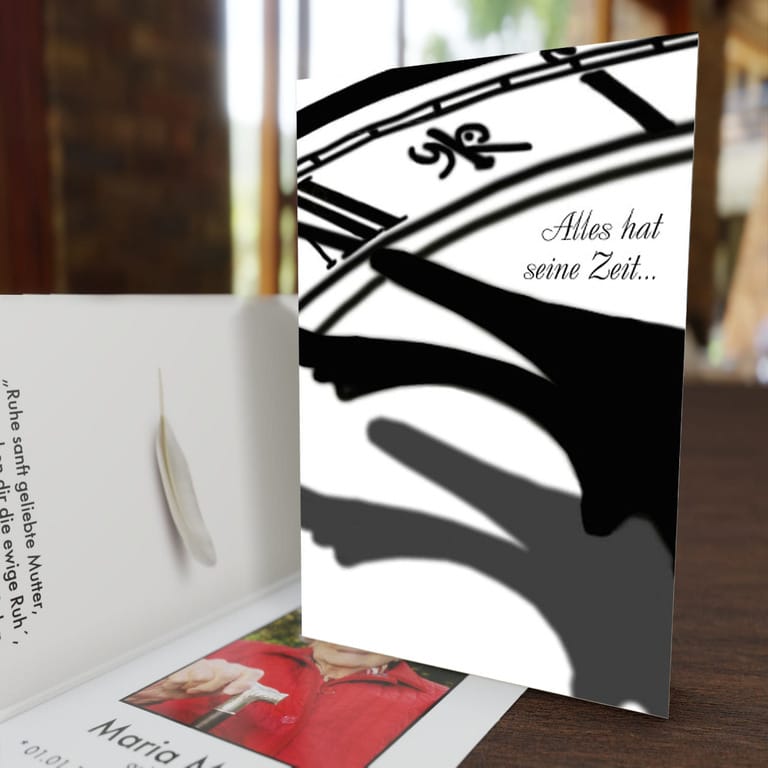 Elegantes Sterbebild mit dem Motiv Zeit.