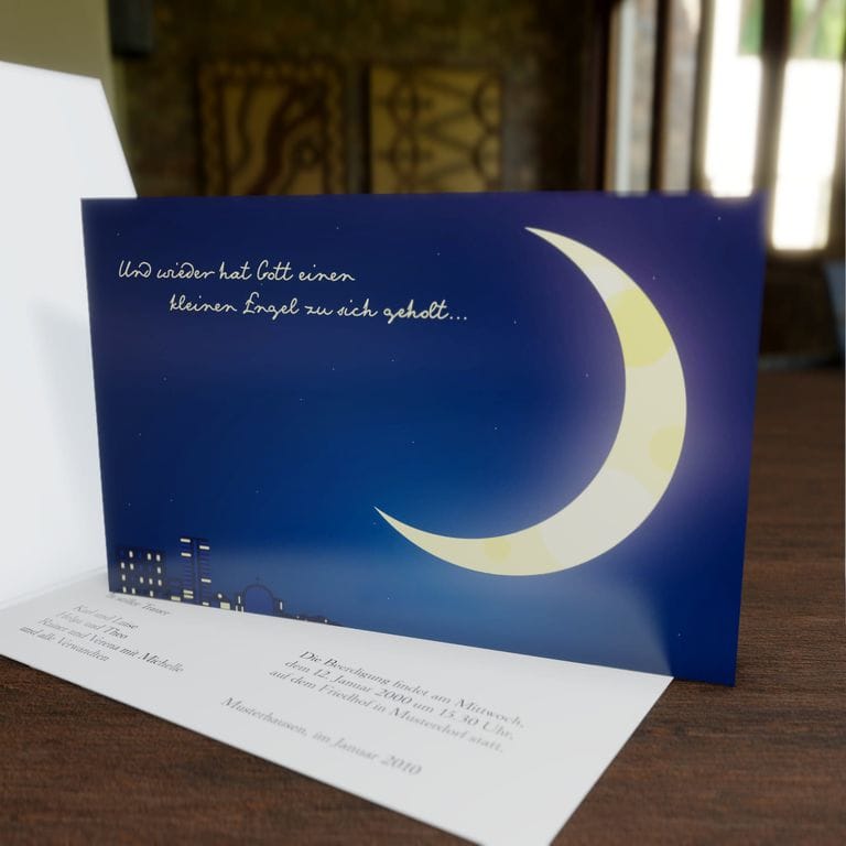 Trauerkarte Sternenkind mit Halbmond.