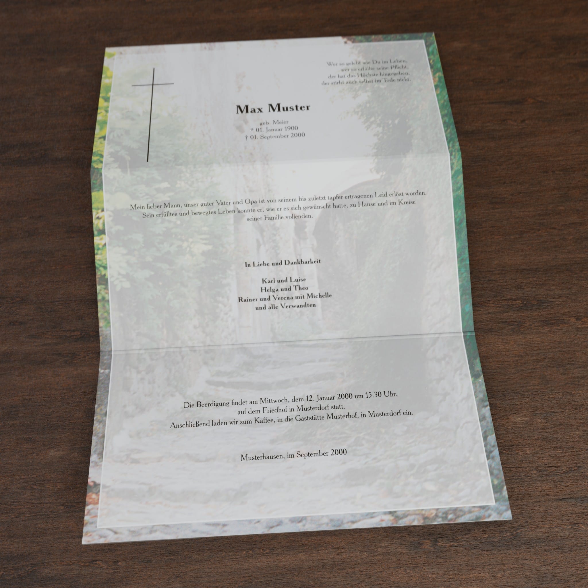 Dieser Trauerbrief wird individuell für Sie in Farbe gedruckt.