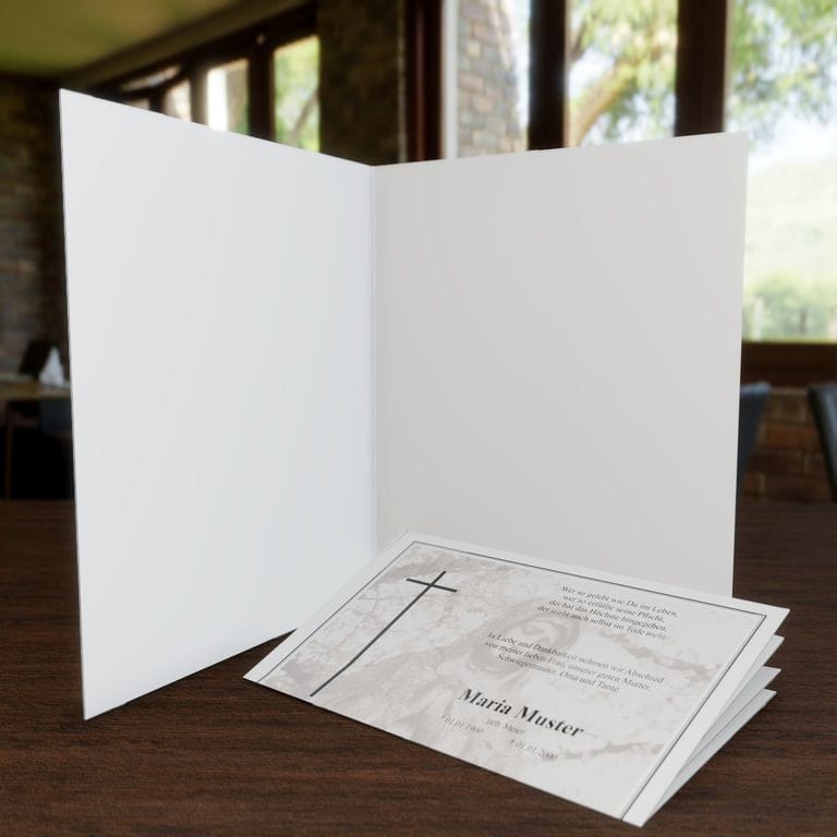Unsere Trauerbriefe werden auf hochwertigem 120g/m² Papier gefertigt – wahlweise in dezentem Creme, edlem Leinen oder klassisch mattem Weiß. So bieten sie nicht nur eine angenehme Haptik, sondern unterstreichen auch die besondere Wertigkeit Ihrer Mitteilung.