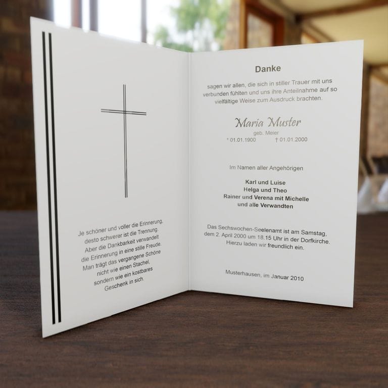 10 Trauerdankkarten klapp 31,10 € inkl. Umschläge und MwSt. zzgl. Versand