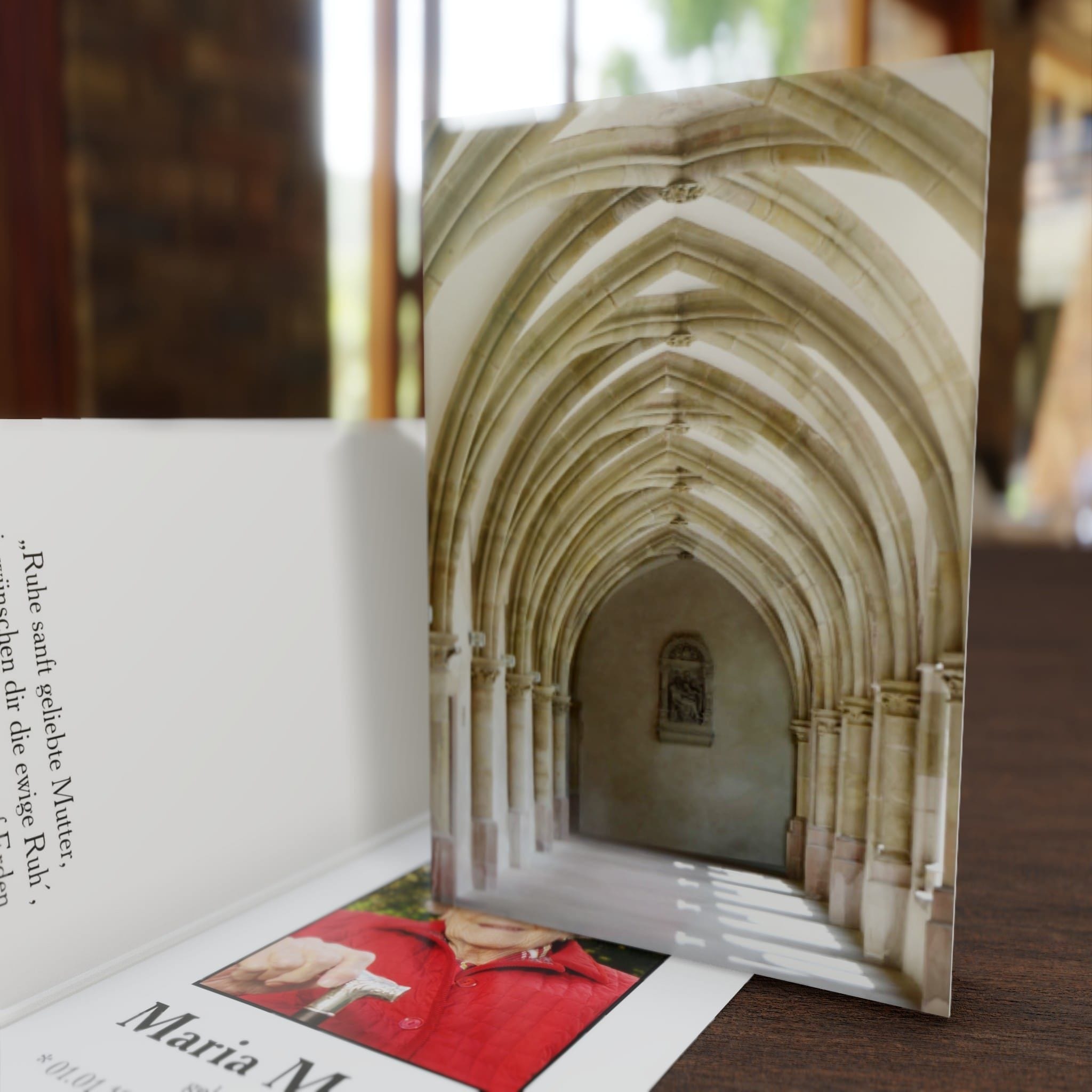 Stilvolle Trauerdanksagungskarte mit dem Motiv Gewölbe.