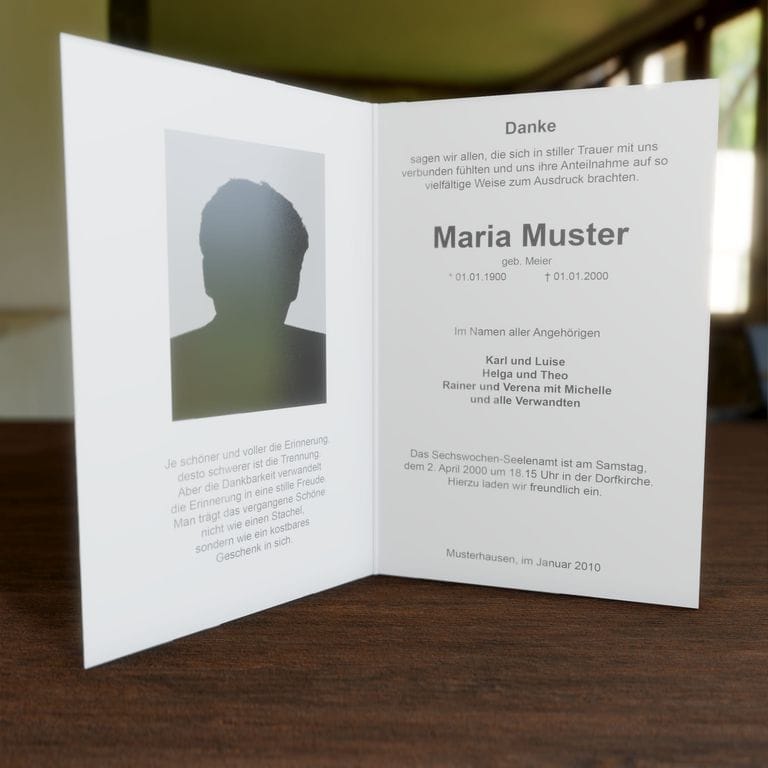 10 Trauerdankkarten klapp 31,10 € inkl. Umschläge und MwSt. zzgl. Versand