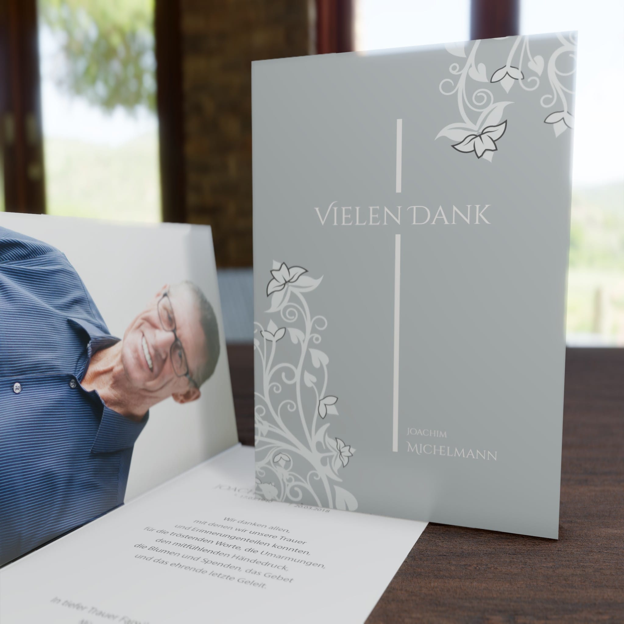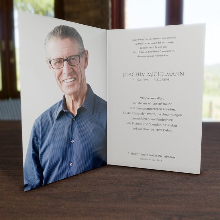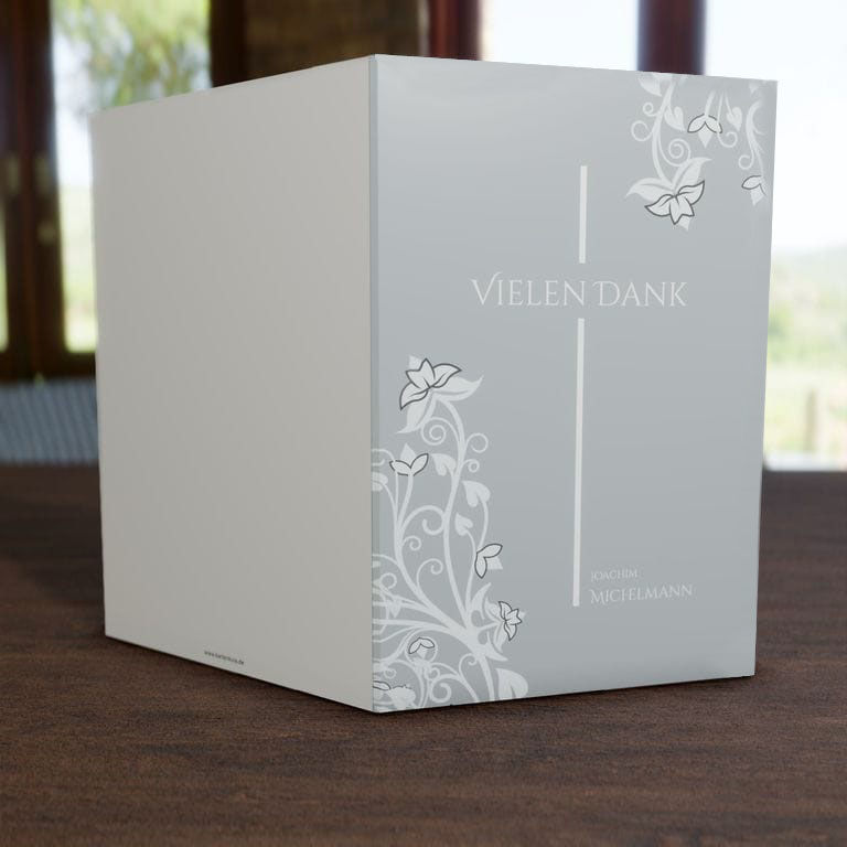 Diese Trauerdankkarte ist 4-seitig und wird individuell für Sie in Farbe gedruckt.
