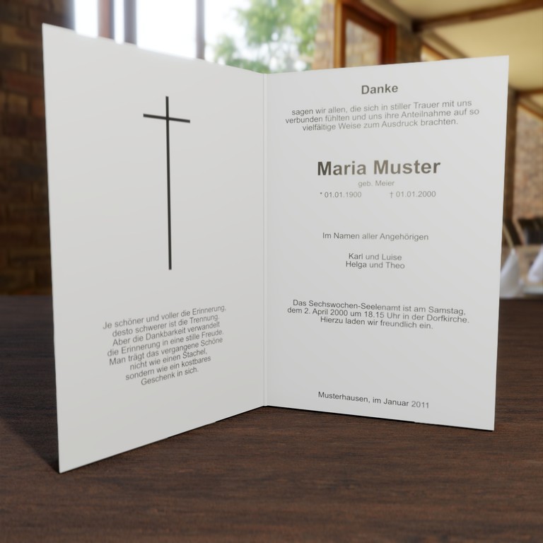 10 Trauerdankkarten klapp 31,10 € inkl. Umschläge und MwSt. zzgl. Versand