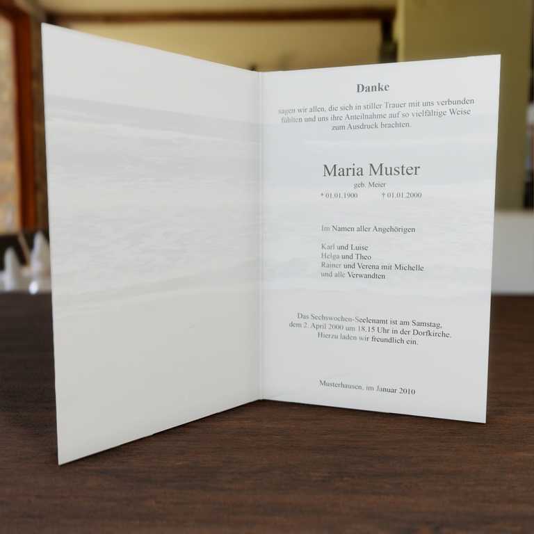 Diese Trauerdankkarte ist 4-seitig und wird individuell für Sie in Farbe gedruckt.