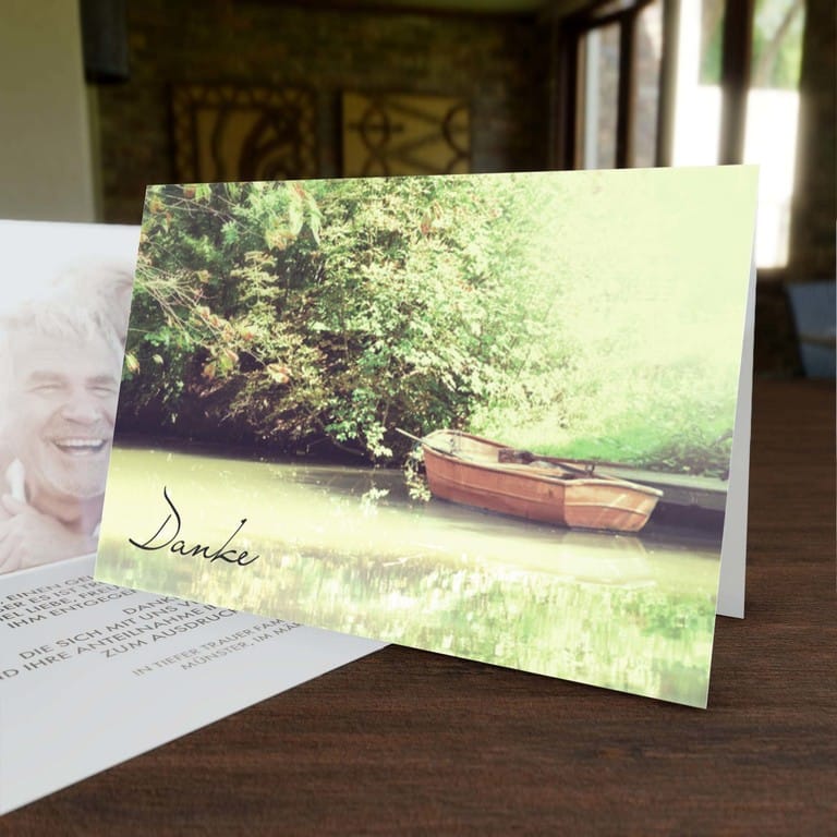 Bedanken Sie sich mit dieser Trauerkarte Danksagung „Boot“ für die erwiesene Anteilnahme, den Trost und die Unterstützung jeglicher Art in der Zeit der Trauer.
