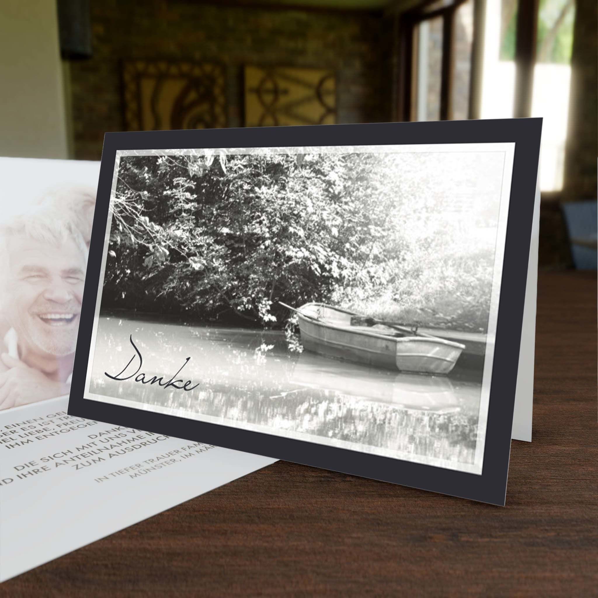 Bedanken Sie sich stilvoll mit der Danksagungskarte „Boot mit Rahmen“ für die erwiesene Anteilnahme,