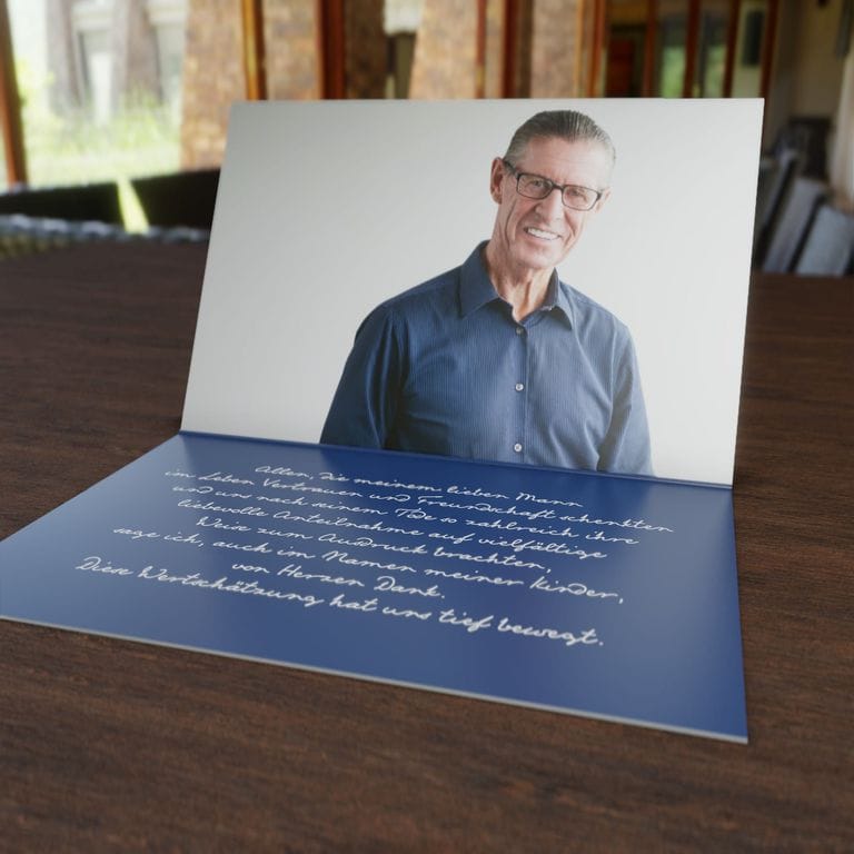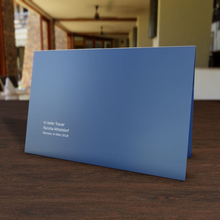 Diese Trauerdankkarte ist 4-seitig und wird individuell für Sie in Farbe gedruckt.
