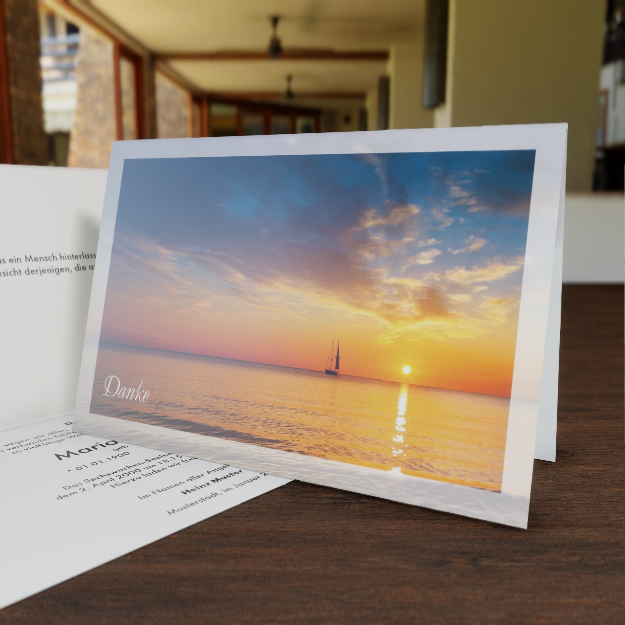 Stilvolle Trauerdanksagungskarte mit dem Motiv Segler.