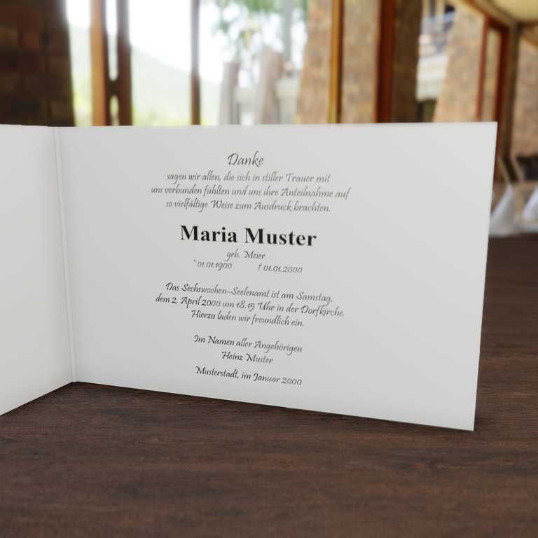 Diese Trauerdankkarte ist 4-seitig und wird individuell für Sie in Farbe gedruckt.