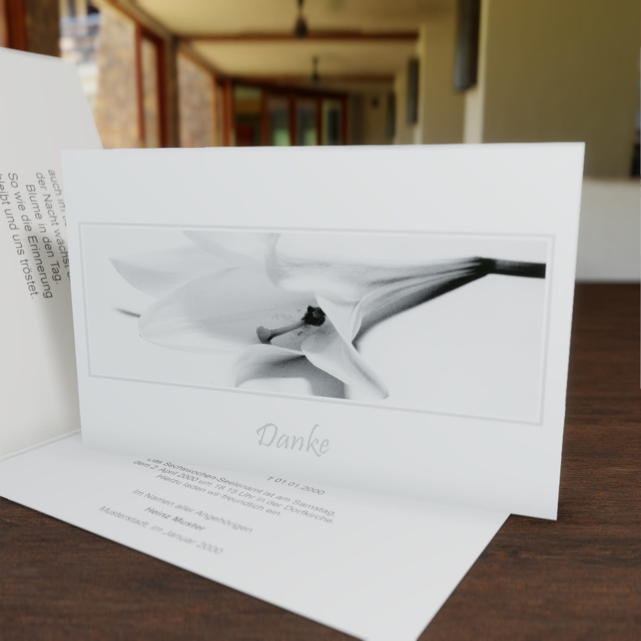 Stilvolle Trauerdanksagungskarte mit dem Motiv Lilie liegend 2.