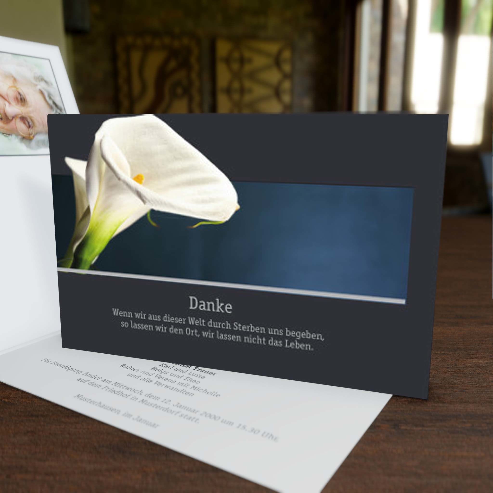 Informieren Sie nahestehende Verwandte und Freunde mit dieser dezenten Trauer Klappkarte „Lilie modern“ über den eingetretenen Trauerfall und den Termin für die Trauerfeier.