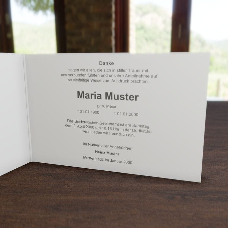 Diese Trauerdankkarte ist 4-seitig und wird individuell für Sie in Farbe gedruckt.