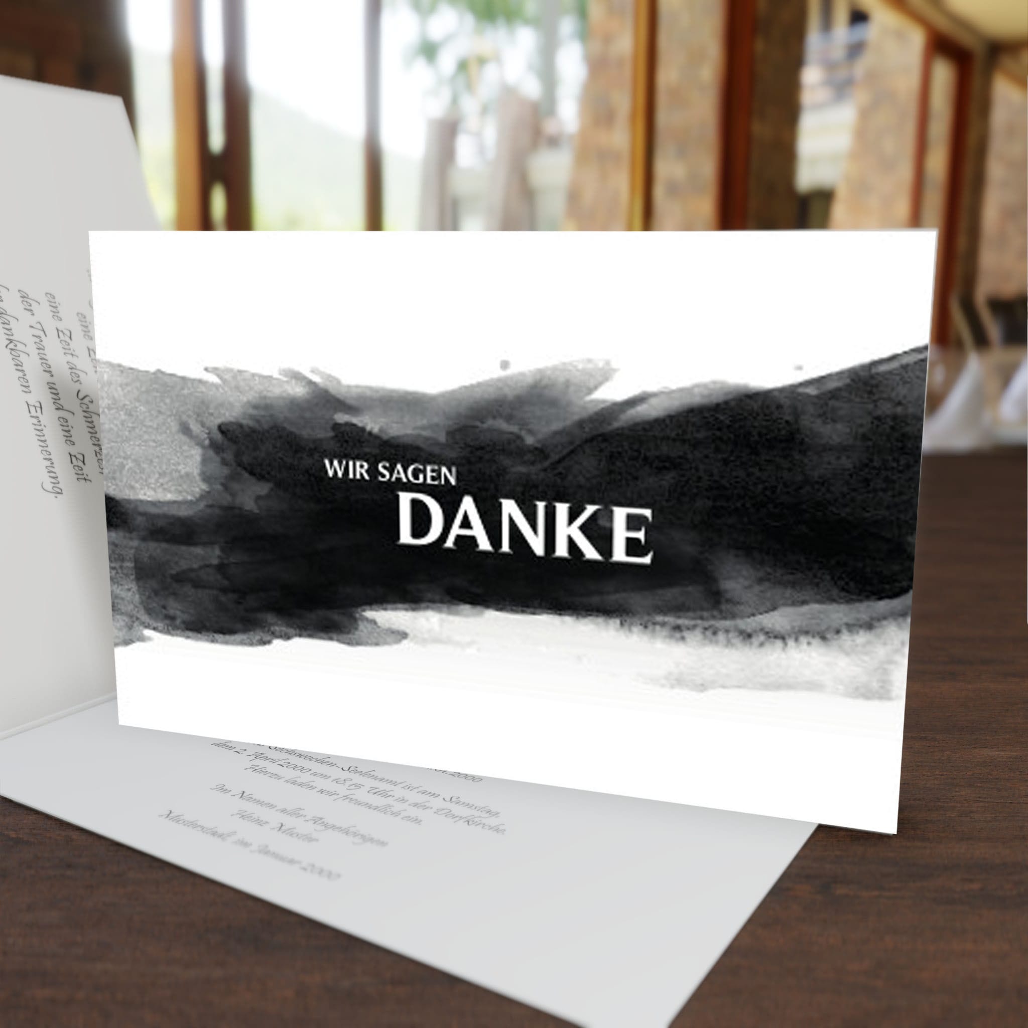 Trauer Danksagung mit Tinte im klassischen Hochformat.