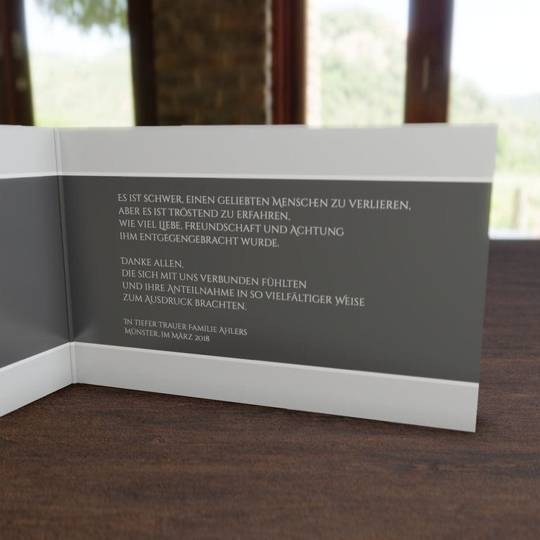 Diese Trauerdankkarte ist 4-seitig und wird individuell für Sie in Farbe gedruckt.