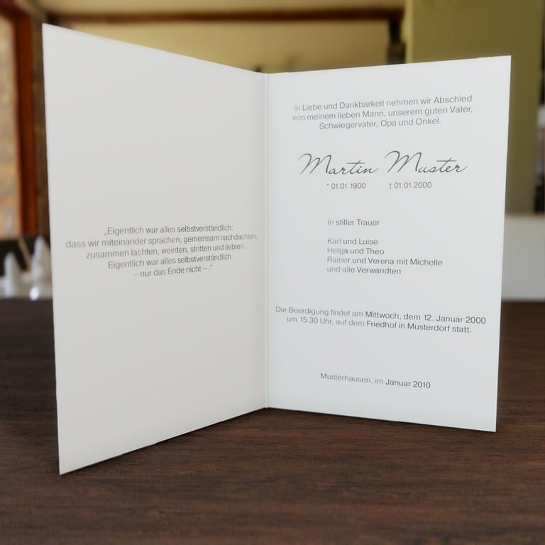 10 Trauerklappkarten 31,10 € inkl. Umschläge und MwSt. zzgl. Versand