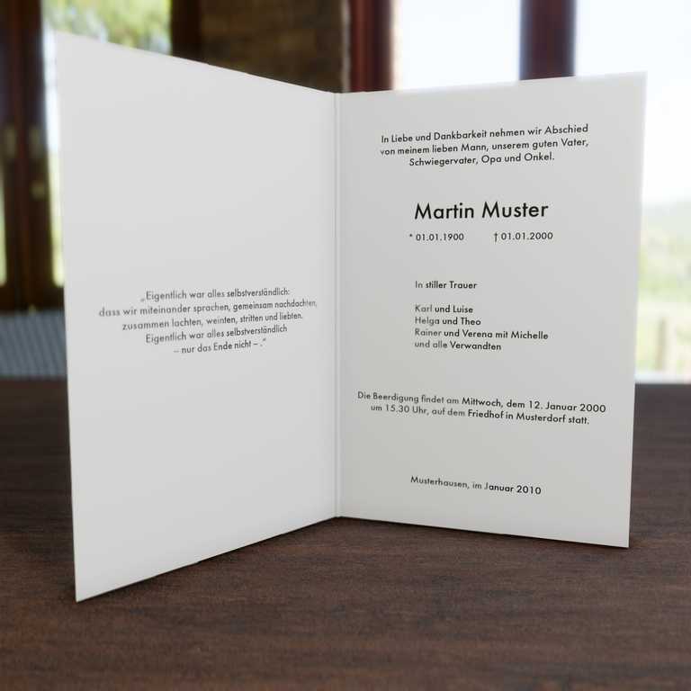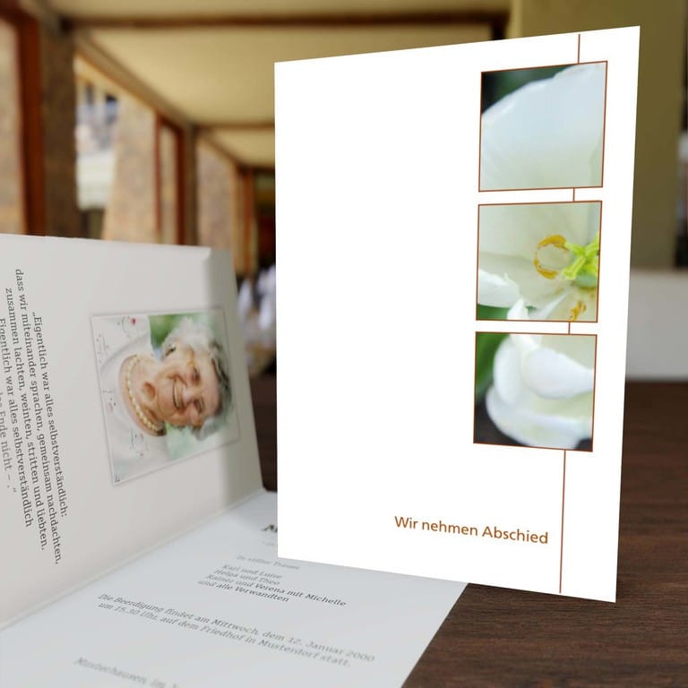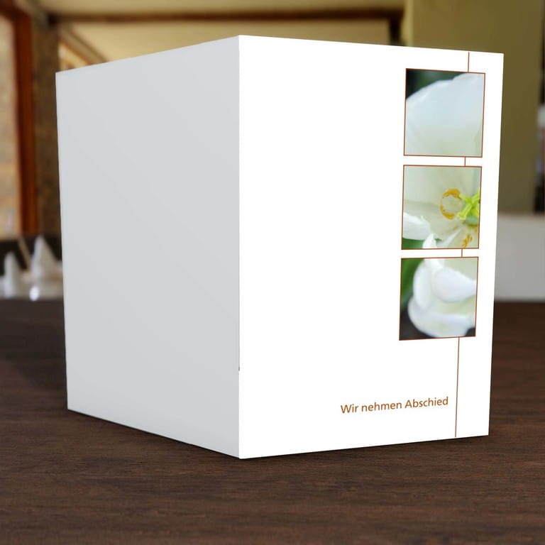 Informieren Sie nahestehende Verwandte und Freunde mit dieser stilvollen Trauer Klappkarte „Blume“ über den eingetretenen Trauerfall und den Termin für die Trauerfeier.
