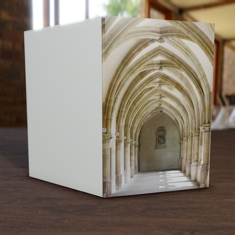 Trauerkarte mit dem Motiv Gewölbe im klassischem Hochformat.