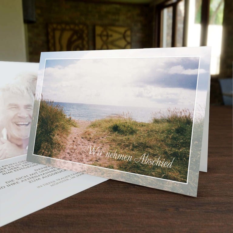 Bedanken Sie sich mit dieser Trauerkarte „Dünen“ für die erwiesene Anteilnahme, den Trost und die Unterstützung jeglicher Art in der Zeit der Trauer.