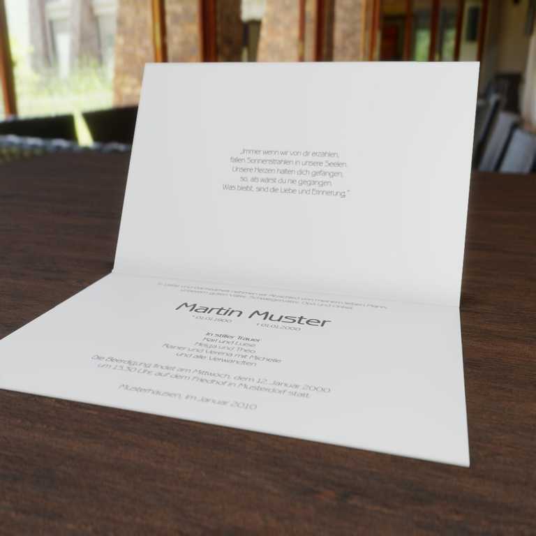 Diese Trauerkarte ist 4-seitig und wird individuell für Sie in Farbe gedruckt.