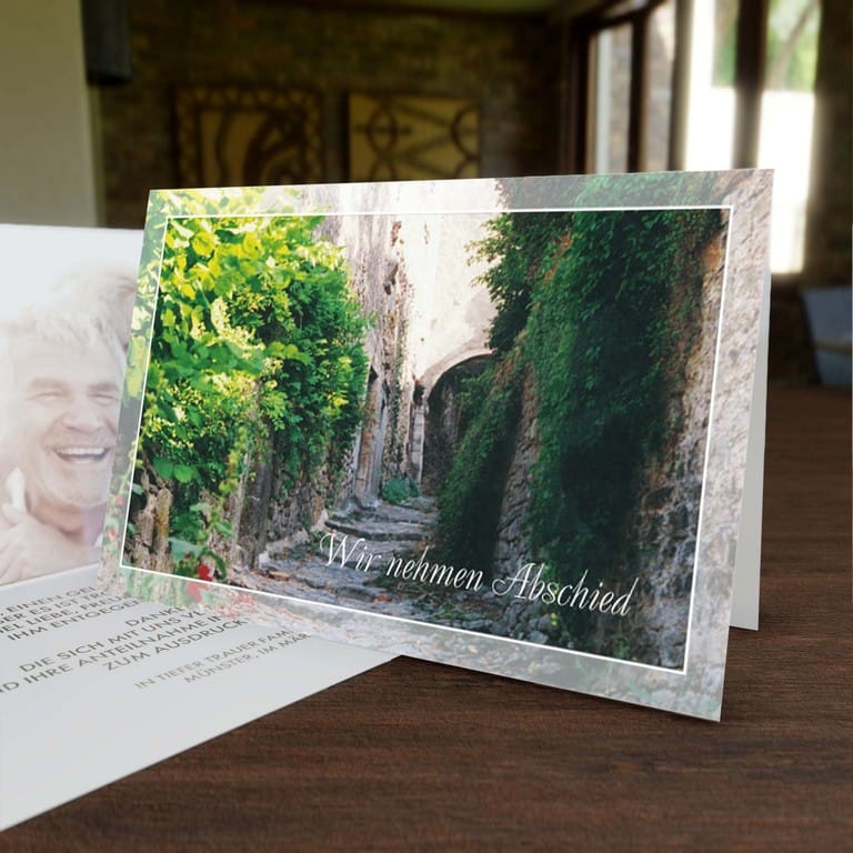 Sie können die Vorlage nach Schlichte Trauerkarte mit Naturstein Treppe.